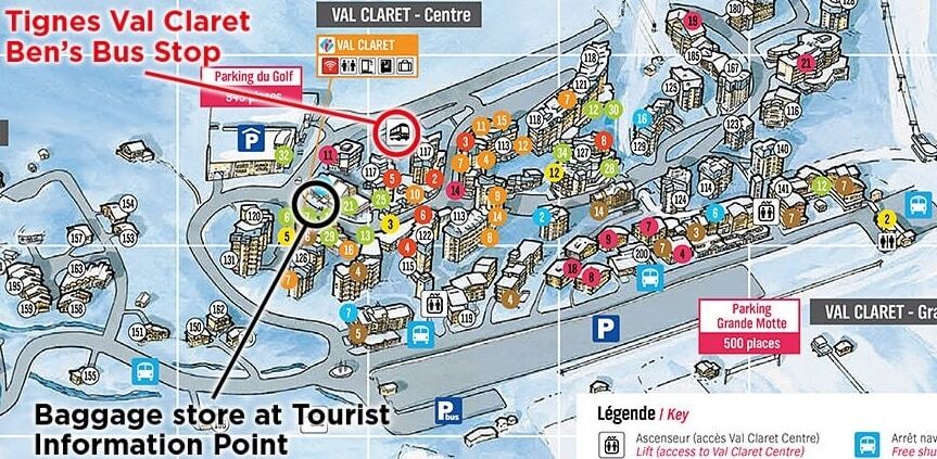 Baggage Storage: The Tourist Office run a facility in Val Claret & Le Lac. More details can be found on our Baggage Store page