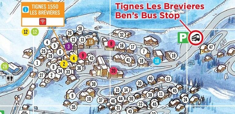 See our Tignes Les Brevieres Bus Stop in GoogleMaps.