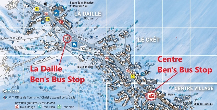 – If you arrive into the resort before 9pm, we will drop you at La Daille. From here you can take the ‘Red Train’ shuttle bus onto your accommodation.